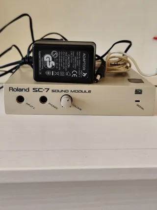 Se vende lote de equipo de sonido. - Módulo de sonido Roland SC-7.Sintetizador MIDI autónomo.Hasta 28 voces de Polifonía y 16 partes Multitimbrales. Sonidos:128 sonidos compatibles con General MIDI.Efectos digitales de reverberación,delay y chorus. El dispositivo no enciende. - Cable DMX para iluminación escénica y/o de micrófono con conectores XLR de 3 pines. - Adaptador de corriente Acepower Electronics Co., Ltd. - Cable interfaz de audio USB a XLR.Permite conectar el micrófono con conector XLR directamente a un ordenador para grabr audio. - Varios cables de conexión. - Filtro antipop para micrófono. - Adaptador de audio Jack 3.5