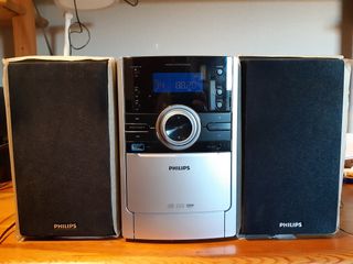 Sistema de audio Philips Vendo microcadena Philips modelo MCM166 en muy buen estado estético. Incluye su mando a distancia original, que funciona perfectamente. IMPORTANTE: El lector de CD no reconoce los discos (necesita limpieza o cambio de lente). El resto de funciones van de maravilla: Puerto USB: Reproduce MP3 sin problemas. Radio FM: Sintoniza perfectamente. Altavoces: Sonido nítido y potente para su tamaño. Ideal para quien use música en pendrive o quiera un equipo de calidad para la radio. Vendo sistema Philips MCM166 completo: unidad central, pareja de altavoces y mando a distancia original.