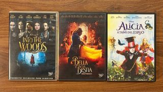 Lote de tres películas en formato DVD. - Into the Woods - La Bella y la Bestia - Alicia a través del espejo
