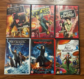 Conjunto de seis películas en formato DVD. - Hellboy II: The Golden Army - Kick-Ass - Scott Pilgrim vs. the World - Percy Jackson & The Lightning Thief - Abraham Lincoln: Vampire Hunter - Alice in Wonderland