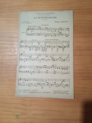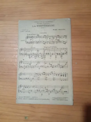 Partitura antigua de La Mystérieuse, publicada en 1919. - Composición de Marc Selling. - Orquestación por G. Gandolfi. - Ediciones Gille et Jaquenod, París.