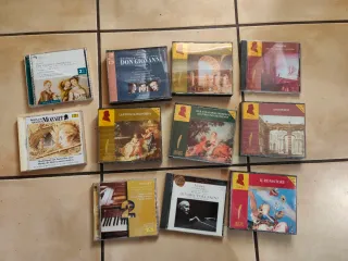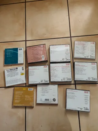 Lote de 22 CDs de música clásica y ópera de Mozart. Incluye títulos como Don Giovanni, La Finta Semplice, Il Re Pastore, entre otros. - 22 CDs de Mozart. - Género: Clásica y Ópera. - Incluye óperas y música instrumental.
