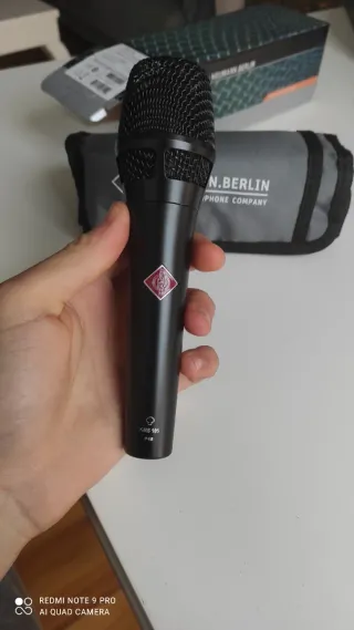 Micrófono de condensador Neumann KMS 105 en color negro. Diseñado para aplicaciones vocales en vivo. - Patrón polar cardioide. - Cuerpo metálico robusto. - Incluye bolsa de transporte. Está como nuevo, tiene 1 año y medio desde que se compró y se a usado un par de veces para algún evento y se a vuelto a guardar.