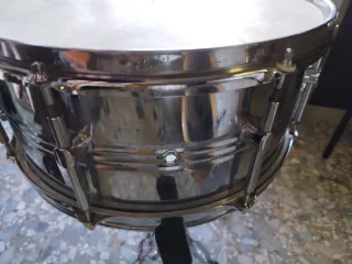 Caja/tambor Basix cromada, con cuerpo metálico de gran calidad. Mantiene el parche original, sonido potente y limpio. Se entrega con correa y baquetas incluidas. Logo visible y estética muy cuidada. Funciona perfectamente, prácticamente sin uso.