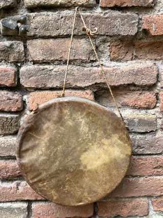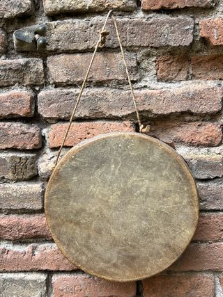 Tambor artesanal con piel de cordero. - Hecho a mano. - Sonido auténtico. . Redondo . Sin baston / palillo . Casi sin uso, como nuevo . 25cm x 5cm