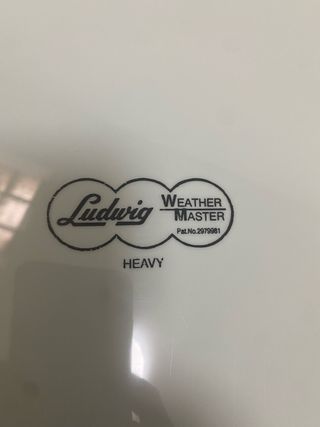 Cabeza de tambor Ludwig Weather Master. - Modelo: Heavy - Color: Blanco - Logo de la marca Ludwig visible.