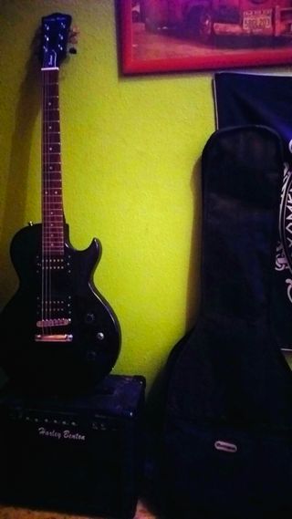 Set compuesto por: - Guitarra eléctrica Harley Benton modelo SC-200BK Student, con selector de pastilla en tres posiciones, 1 control de volumen + 1 control de tono. Color negro brillo con clavijas y puente en cromo. - Amplificador 40W Harley Benton: selector de sonido acústico y distorsión con parámetros regulables de ganancia y volumen, regulador de volumen acústico, ecualizador de sonido para agudos, medios y graves. Toma de entrada para cable Jack 3.5 y dos tomas de salida. - Set de púas de diferente grosor/dureza, correa y funda para guitarra, conector jack 3.5 a minijack, cable de guitarra jack 3.5