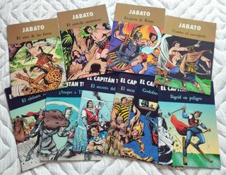 - De kiosko,se adquirían con el periódico. - Tebeos en los que se reeditan historias de diferentes autores (Ibáñez,Víctor Mora...). - En buenas condiciones,algunos pueden tener páginas ligeramente amarillentas debido al paso del tiempo. - Precio unidad 2 euros,si hay varios de un mismo personaje no los vendo por separado,es decir,los de Capitan Trueno van en un lote (10 euros),Jabato otro lote... Botones Sacarino (2 euros) y así sucesivamente.Comprobar las fotos para ver la selección de personajes. - Cualquier duda consultad.