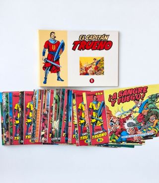 Precio por los 32 tebeos más las tapas de cartón El Capitan Trueno Contiene los primeros episodios de la colección Del 1 al 32 incluido Incluidas las tapas para su encuadernación Ver más comics y libros en mi perfil