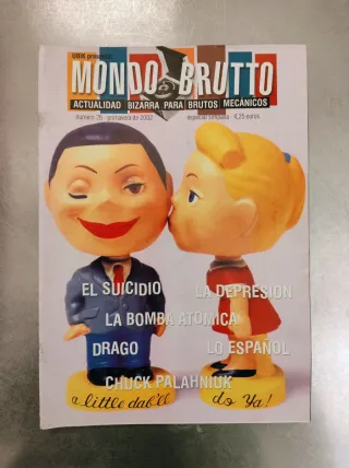 REBAJAS! Fanzine Mondo Brutto, actualidad bizarra para brutos mecánicos, nº26. Especial Simpatía. Revista de culto publicada en primavera de 2002. Contiene artículos y reportajes sobre: - Lo español - El suicidio - Sánchez Dragó - La depresión - Tebeos bizarros - Carlos Tena - Alejandro Amenábar - Viajes en el tiempo - Michael Jackson y un largo etcétera, además de sus secciones habituales: - Hombres salvajes, bestias salvajes - Mondo Lirondo - Artículos de Galactus, Dildo de Congost, Grace Morales, Joe D'Alessandro y David Glamour. En muy buen estado. Para coleccionistas y fans de MB.