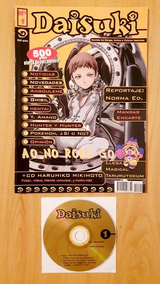 Revista Daisuki número 1 Manga, anime y cultura japonesa. Junio 2000. Completa. Incluye CD. En perfecto estado estado de conservación. Como nueva. Artículo descatalogado. Ideal para coleccionistas. Mira mis otros artículos en mi perfil: videojuegos, consolas, cómics, revistas, tebeos, libros de texto, libros de inglés, papelería, material escolar, regalo, etc.