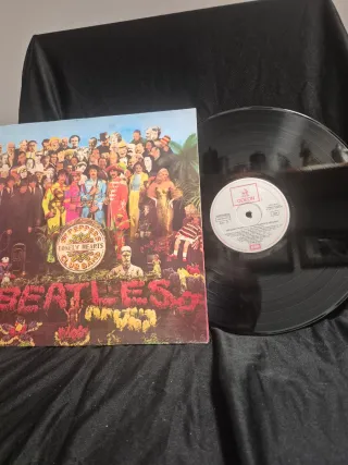 Edición en vinilo del icónico álbum de The Beatles, Sgt. Pepper's Lonely Hearts Club Band. 064 !!! 10 41771 Mod 2555 an̈o 1976 Impecable - Portada clásica del álbum. - Disco de vinilo negro.