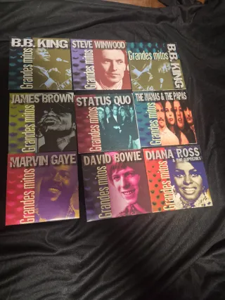Colección de 9 CDs de Grandes Mitos de música. - B.B. King - Steve Winwood - James Brown - Status Quo - The Mamas & The Papas - Marvin Gaye - David Bowie - Diana Ross & The Supremes - B.B. King (segundo CD) Todos los CDs están nuevos, sin abrir. Todos los cd están con su brillo perfectos