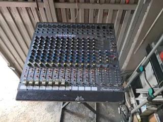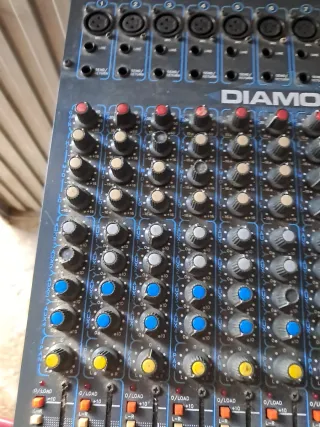 Mesa de mezclas Studimaster Diamond pro 12-3 con 12 canales.La mesa de mezclas enciende y funcionan algunas de sus funciones necesitaría una limpieza interior general y reparar algunas cosas para que funcione a la perfección como se puede ver en las fotos también tiene defectos estéticos esta mesa en su dia costo 150000 pesetas que al cambio pueden ser unos 900€ - Diseño compacto y robusto. - Controles intuitivos para cada canal. - Entradas XLR y jack.
