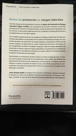 Manual de Javier Rodrigo Agulló (Paraninfo). Es el contenido obligatorio para la formación complementaria en cualquier certificado de profesionalidad. Estado impecable, prácticamente nuevo y vigente según normativa.