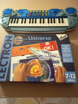Set de juego Conoce el Universo de Diset, ideal para niños de 7 a 12 años. Incluye un piano electrónico Music Workshop,los dos por 10€ - Juego educativo sobre el universo. - Piano electrónico con teclas. - Incluye Conoce el Universo de Diset.