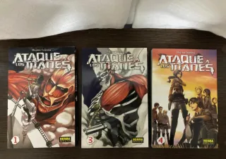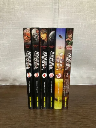 Ataque a los titanes tomos 1, 3, 4, 33 y 34. Además del tomo 2 de Ataque a los titanes antes de la caída. Todos ellos en perfecto estado y sin apenas uso desde su compra. NO LOS VENDO POR SEPARADO