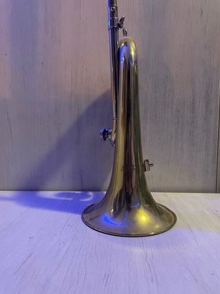 Corneta brillante de la marca Honsuy. - Instrumento musical de viento. - Acabado metálico brillante. - esta totalmente nueva la entrego con su funda -precio algo negociable -limpiandola se doblo una cosa