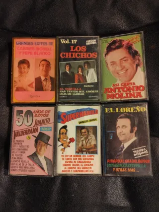 Lote de 6 cintas de casete de música española. - Grandes Éxitos de Carmen Morell y Pepe Blanco - Vol. 17 Los Chichos - Así Canta Antonio Molina - 50 Años de Éxitos Juanito Valderrama - Supermanolo - El Loreño Los 6 por 3'60€, 0'60€ cada casette, no se aceptan ofertas. Por separado 1€ cada cassette. Tengo muchos más en mi perfil