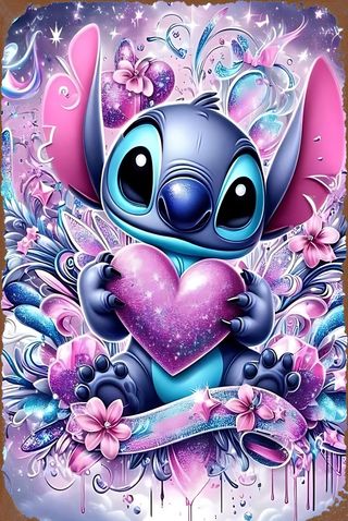 Cartel decorativo estilo vintage de Stitch de Disney. Ideal para coleccionistas o fans. - Diseño de Stitch rodeado de flores tropicales. - Acabado metálico con aspecto envejecido. - Borde rústico. - Dimensiones 20X30cm. Disponemos de muchos modelos. Elige el que más te guste! Preguntar sin compromiso.