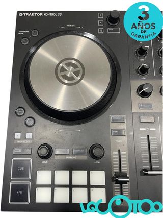 Controlador DJ Traktor Kontrol S3 en color negro. - Diseño compacto y robusto. - Jog wheels de gran tamaño. - Sección de mezclador integrada. - Pads de rendimiento personalizables. EN PERFECTAS CONDICIONES!! SIN SOFWARE TRAKTOR PRO 3/4 CABLE DE ALIMEMTACION Y CABLE USB INCLUIDOS. LA CAJA ESTA UN POCO DAÑADA PERO AUN SE PUEDE UTILIZAR PARA TRANSPORTARLA. SE INCLUYE TAMBIEN 1 VINILO DE CODIGO DE TIEMPO SERATO Y UN VINILO DE CODIGO DE TIEMPO TRAKTOR DE REGALO.