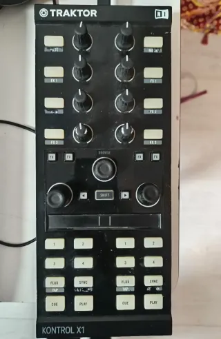 Controlador DJ Traktor Kontrol X1. - Diseño compacto y portátil. - Botones retroiluminados para una fácil visibilidad. - Compatible con software Traktor. Usado en casa