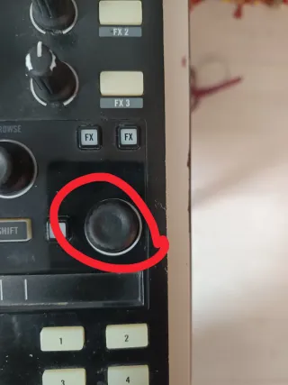 Controladora traktor x1 MK2.(Efectos) Todo funciona perfectamente a excepción de la rueda que marco en la segunda foto. Gira perfectamente pero no hace el "push" que debería hacer. Es un fallo mecánico que tiene arreglo. Si necesitas videos, fotos o más info, no dudes en pedírmelas!!!