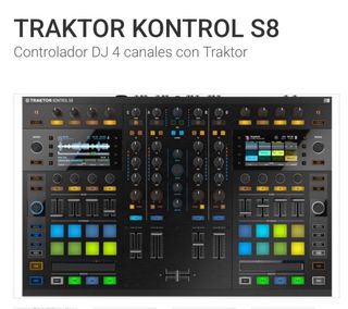 Mesa de mezclas Traktor Kontrol S8 en color negro. Diseñada para DJs profesionales. - Pantallas integradas. - Pads de rendimiento. - Faders de canal. Está en su caja original con todos los accesorios, Solo se ha usado 5 veces en casa, fue un capricho que apenas le di uso