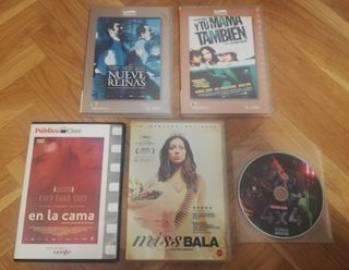 Pack de películas de cine latinoamericano en formato DVD que incluye cinco grandes títulos: - "NUEVE REINAS" (2000, Fabián Bielinsky, Argentina). Carátula slim. - "Y TU MAMÁ TAMBIÉN" (2001, Alfonso Cuarón, México). Carátula slim. - "EN LA CAMA" (2005, Matías Bize, Chile). Carátula slim. - "MISS BALA" (2011, Gerardo Naranjo, México). - "4X4" (2019, Mariano Cohn, Argentina). Disco original sin carátula. OFERTA: Precio por todas. #Cine #Latinoamérica #Crimen #Thriller #Drama #Acción