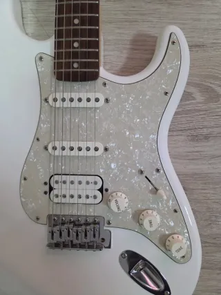 Conjunto completo de golpeador Pickguard + pastillas originales Fender Player HSS made in Mexico + potenciometros + selector originales Fender . El golpeador es de estilo HSS con un acabado nacarado. y está apantallado. Proviene todo de una Fender Mexico Player Series plus top, con 2 single coil Alnico 5 y 1 Humbucker Alnico 2. Funciona perfectamente y sonido brutal.