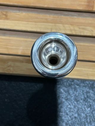 Boquilla para trombón/bombardino marca Greg Black, modelo 5GS. Fabricada en metal plateado. Tudel Ancho. Peso Regular. Solo probada. - Modelo: 5GS - Marca: Greg Black - Material: Metal plateado