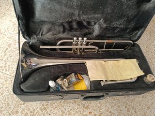 En perfecto estado estético y funcional. Los pistones y las bombas funcionan con suavidad y muy buena compresión. Se ha limpiado, revisado y puesto a punto para su venta. Buena sonoridad y afinación. Estéticamente se encuentra en buen estado, sin golpes, reparaciones ni marcas de las mismas. Conserva el lacado en buen estado. Puede presentar alguna pequeña marca debido al uso. Ofrecemos financiación. Si quieres saber algo más, fotos, contacta con nosotros. No entregamos boquilla con el instrumento. Dispones de una semana de prueba y un año de garantía. Envío gratuito. Compradores internacionales consultar los gastos de envío.