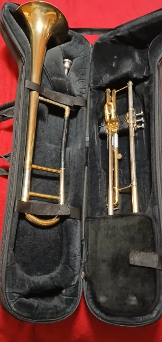 Trombon Yamaha de pistones afinado en Do y revisado hace poco, por lo q suena perfectamente. Viene con boquilla y maleta de calidad. N1008