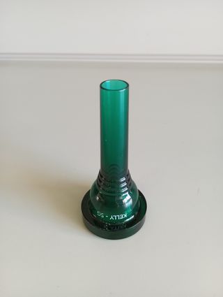 Disponemos de varias unidades. Boquilla para trombón marca Kelly, modelo 5G, en color verde. - Material: Plástico. - Color: Verde translúcido. - Modelo: 5G.