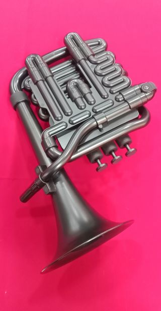 Trompa de plástico para niños. - Afinación en Sib - 3 varas de afinación para afinación de Do - 3 accesorios de boquilla (bajo / medio / alto) - Palancas de paletas verticales con función que no requiere mantenimiento - Fabricado en resina sintética ABS - 100% impermeable y lavable - Incluye estuche con correa para el hombro - Color: Negro - Peso: 720 g - El jHorn es tocable por su diseño compacto para niños a partir de 4 años - Puede tocarse como trombón tenor, bombardino o como trompa