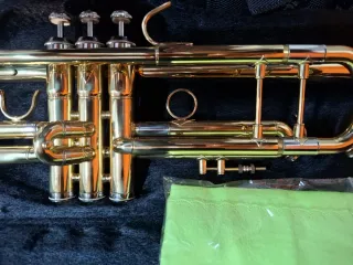 Trompeta Bach TR-650 nueva. Tudel ML .459' = 11.66 mm. Diámetro de la campana Ø 4 3/4'' = 119 mm. Tudel de latón dorado. Varas exteriores en alpaca. Pistones de acero inoxidable. Soporte del pulgar en la 1ª bomba. Anillo de afinación en la 3ª bomba. 2 llaves de desagüe. Boquilla original Vincent Bach 7C y aceite para pistones Bach. Estuche ligero con sistema de mochila. #bach #yamaha #king #getzen #calicchio #adams