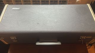 Estuche rígido para trompeta marca Getzen. Espacio para atril sordinas, etc. Tiene un pequeño detalle en el frente, como se ve en las fotos - Exterior de cuero sintético negro. - Costuras blancas reforzadas. - Dos insignias metálicas en la parte frontal.