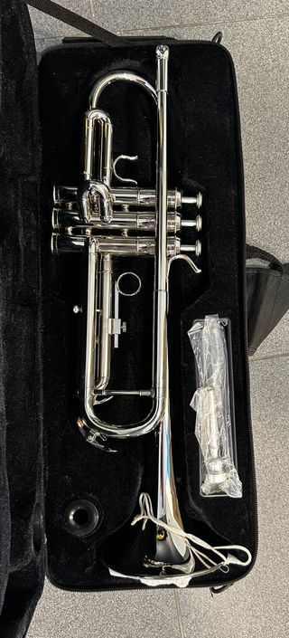 Trompeta plateada, ideal para quienes se inician en la música. Poco uso. - Incluye estuche y boquilla (tamaño 7C) - Ideal para principiantes - Cuerpo de latón bañado en plata - Pistones chapados en níquel - Afinacion Sib