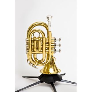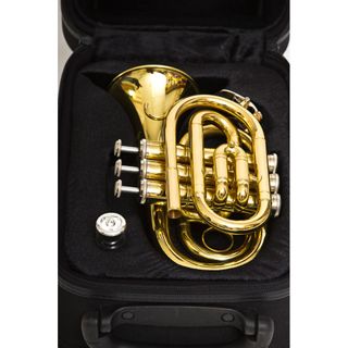 Trompeta pocket de color negro, completamente nueva a estrenar. En Sib de 3 pistones. Se vende a mitad de precio por liquidación de tienda musical. Incluye boquilla, estuche, set de limpieza con guantes blancos y bayeta. Envío por correos, mrw, dhl,... - Acabado brillante. - Diseño compacto y ligero.