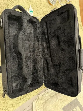 Estuche rígido para trompeta, con interior forrado en terciopelo negro para proteger el instrumento. - Exterior de tela resistente. - Cierre de cremallera. - Asa de transporte. - Compartimento interior moldeado.