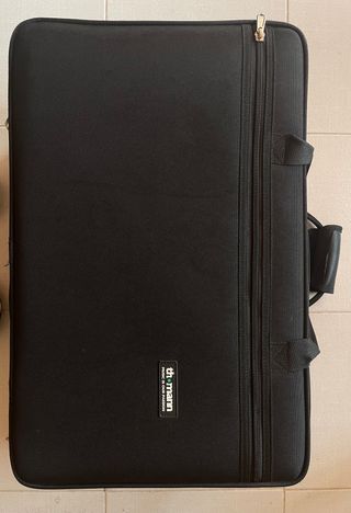 Funda para trompeta de la marca Thomann. Diseñada para proteger tu instrumento. Incluye correas de la funda, y guantes blancos para limpieza. Funda completamente nueva. - Color negro. - Compartimento frontal con diseño acanalado. - Asa superior para transporte. - Correa lateral. - Logo de Thomann con lema MUSIC IS OUR PASSION.