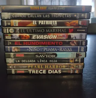 Buen estado. el dia mas largo, windtalkers, La colina de la hamburguesa, Papillon, Gung Ho!, el niño del pijama de rayas, Cuando callan las trompetas, Black hawk derribado, cinco tumbas al cairo ℹ️ DVD ✅en un buen estado de conservación. ⚠️ Precio no negociable. 💶 Pago: tarjeta, paypal o bizum. 📦 Envíos: por correos express, Correos, In Post ℹ️ Págalo o haz la recogida en tienda, si te he es mas cómodo 📬 VENDELO AMAZING Confirmación automática de venta ✔️ proteccion al comprador 💼 Los pagos por Bizum se realizaran en un plazo menor de 2 horas o se anulara la venta 🔒 Tus datos están protegidos. 🛡️ Gracias por tu confianza deposit...