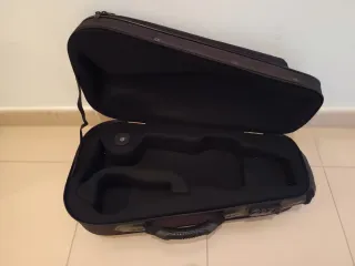 Se vende o se cambia por maleta para Fliscorno y trompeta, con conchas para la espalda. ***NO ENVÍO POR IMPOST*** Maleta rígida diseñada para transportar hasta tres trompetas de forma segura. Su interior está acolchado para proteger los instrumentos. Tiene signos de uso, en las esquinas sobre todo, pero nada grave. Muy segura. - Capacidad para tres trompetas. - Interior acolchado. - Con cinchas para llevar a la espalda. Monette, Carol Brass, Yamaha, Getzen, Bach, Stradivarius, Stomvi, Eclipse, Fides, Thein, Fliscorno, Corneta, Zeus, Kanstul, Shires, Conn, Selmer, B&S, Thein, Adams.