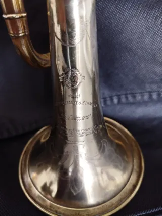 Trompeta en perfecto estado de funcionamiento. Los pistones y las bombas funcionan con gran suavidad. La compresión es muy buena. Muy buena sonoridad y afinación muy características en este modelo. No tiene golpes. Conserva el lacado en buen estado con algún desgaste. Todas las piezas son originales. Campana grabada, tudel de alpaca (Niquel-Silver). Sin duda es una magnífica trompeta de unas características espectaculares de sonoridad y versatilidad. Fabricada en 1959. Modelo muy valorado por su sonoridad entre los músicos de jazz.