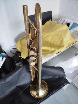 Tompeta con la laca y palanca de primera y tercera bombas originales de fabrica. Modelo descatalogado y actualmente cotizado por trompetistas de musica popular. Por ejemplo, es el modelo de trompeta que actualmente usa Alvaro Rey, trompetista en la gira del conocido artista español Muerdo. La he comprado hace un año y solo hice un par de semanas con ella ya que tambien adquirí al mismo tiempo una selmer TT con la que me he sentido mas comodo (me gusta eso de las tuberias XXL). La trompeta esta en perfecto estado y muy afinadita. Me costo 900€ (chollazo). Si quieres te mando videos soplando un poquito 🤓🎺 NO REGATEO NO CURIOSOS