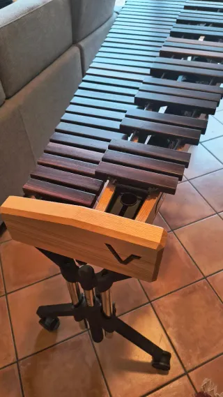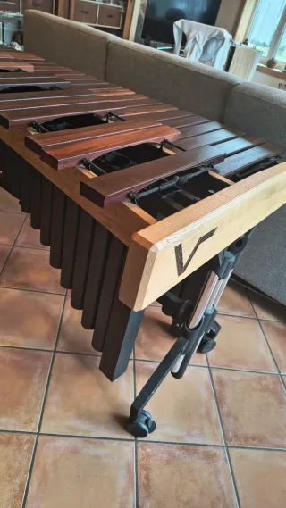 Marimba Vancore PSM 2001. - Lámina ancha de madera de padouk africano - 4 1/3 octavas. - Altura regulable Se vende por falta de uso. La compré para el pase de grado en 2018 y al dejar el conservatorio ya no la toco. Está en perfecto estado, ni golpes ni rallazos, se montó cuando vino nueva de fabrica y nunca se movió del lugar de la foto. Para cualquier duda o más info contactar sin compromiso.