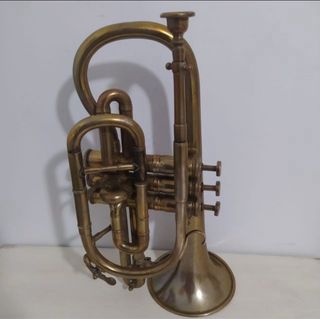 Corneta Besson modelo “Prototype” fabricada en 1897, una auténtica pieza con historia. Se trata de un instrumento original de finales del siglo XIX, fabricado en Londres por la prestigiosa casa Besson, reconocida por su altísima calidad en instrumentos de metal. 🔹 Año: 1897 🔹 Marca: Besson 🔹 Modelo: Prototype 🔹 Estado: Buena conservación para su antigüedad. Presenta signos del paso del tiempo (ver fotos), pero mantiene su estructura y carácter original. 🔹 Sonido: No ha sido tocada recientemente, pero aún responde. Una oportunidad única para colección.