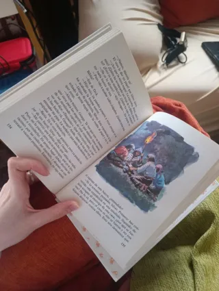 Libro clásico. Está forrado y el único defecto que tiene es que la contraportada está un poco arrugada y tiene una pequeña mancha donde las hojas, como se ve en la foto. El resto está perfecto.
