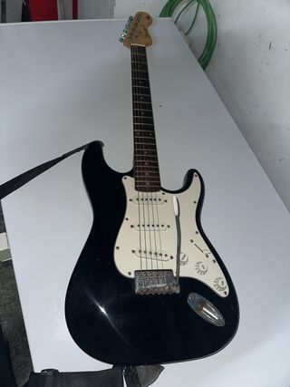 Guitarra eléctrica Stewart en color negro. Ideal para principiantes o para tener un instrumento adicional. - Cuerpo de guitarra eléctrica. - Color negro brillante. - Incluye correa negra.