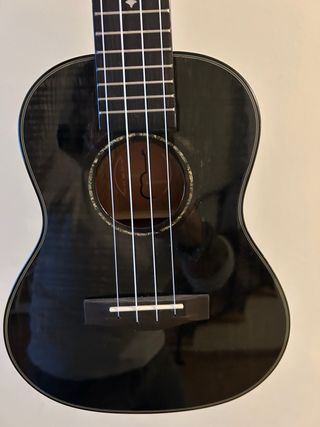 Ukelele de color negro brillante, ideal para principiantes o para añadir a tu colección. - Cuerpo de madera lacada. - Diapasón con marcadores de posición. - Clavijero con afinadores. - Cuerdas de nylon. - Ofertas al privado
